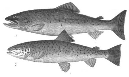 Рис. 1. Благородные лососи: 1 – семга, 2 – кумжа (лосось-таймень)