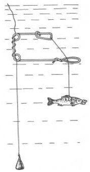 Нижний отрезок лески длиной около метра с поводком и грузилом крепится к основной леске через один или два вертлюжка, во избежание закручивания. В тех местах, где не встречаются крупные судаки и нет вероятности поклевки сома, а попадаются небольшие судачата вперемешку с бершами, достаточно основной лески диаметром 0,3 мм и, соответственно, более тонких поводков.