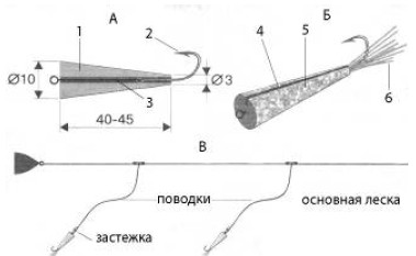 Рис. 4. Оснастка донной удочки для ловли на тихой воде