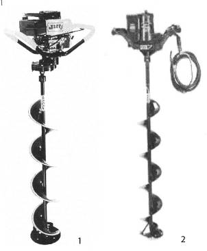 Рис. 4. Мотоледобуры: 1 – бензиновый «Jiffy New Stealth»; 2 – электрический с комбинированным питанием «Mora Electra».