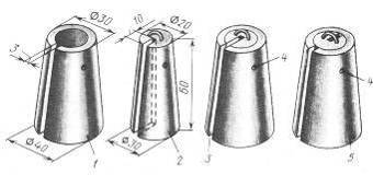 Классическая неразборная пешня (рис. 5) состоит из массивной рукоятки и металлической рабочей части. Материал рукояти – древесина вязких пород, не склонных трескаться: бук, вяз, клен, береза. Рукояти, выполненные из хвойных пород, недолговечны, равно как и пластмассовые. Дубовые и металлические рукояти весьма надежны, но через них удары пешни о лед сильно отдаются в руки рыболова.