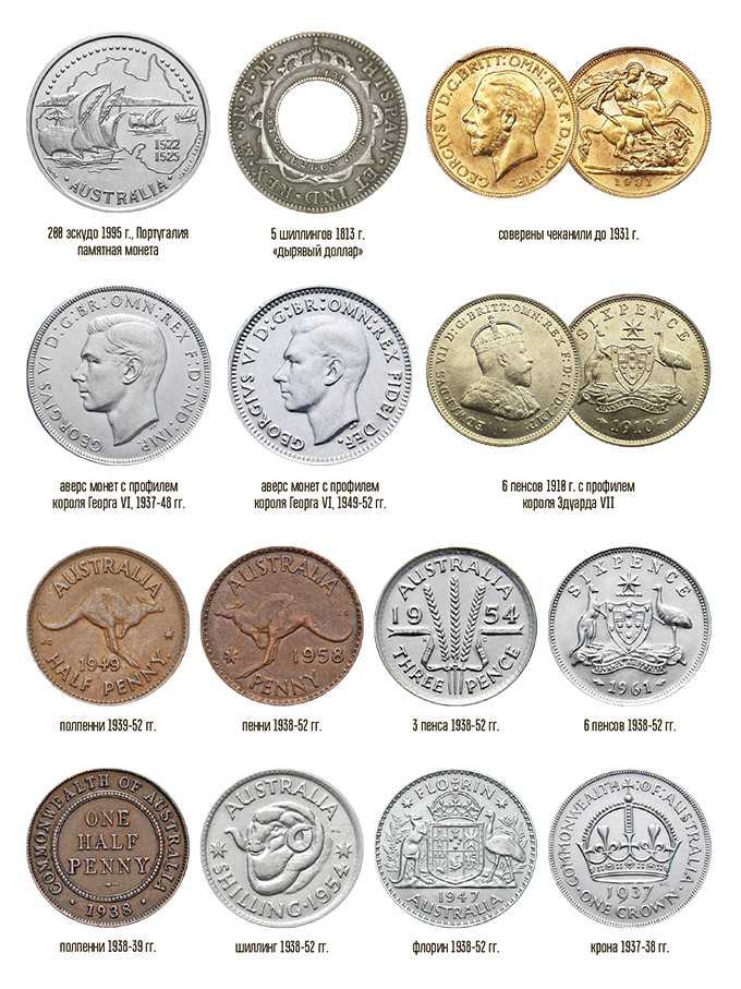 Что удивительно, Австралия никогда не стремилась к полной независимости. Вестминстерский статут 1931 года провозглашал независимость всех британских доминионов, но Австралия ратифицировала его только в 1942 году. И всё равно де-юре главой государства оставался британский король, поэтому на аверсах всех австралийских монет профиль английского монарха.