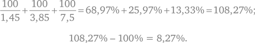 Как видим, получившееся значение больше 100. Все, что выходит за пределы 100, и есть комиссия. В нашем случае маржа равняется: