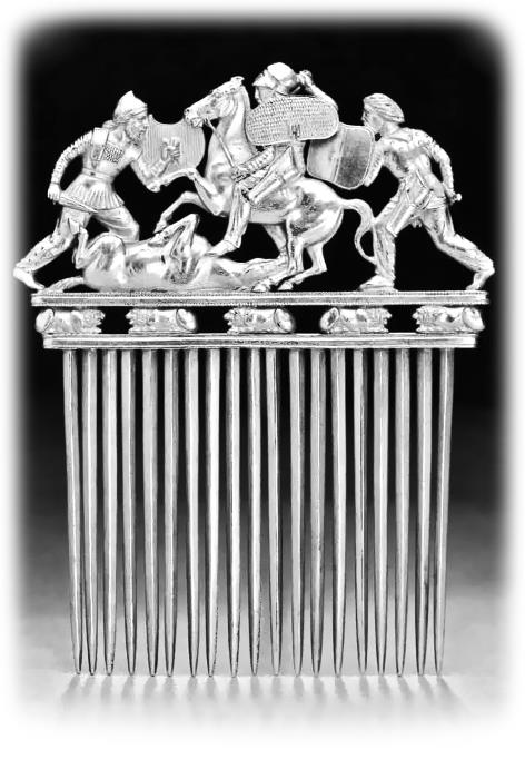 Скифы в бою. Изображение на золотом гребне