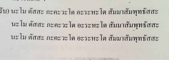 Еще одно наблюдение в чтении мантр отличительное от устной тайской речи – все знают, как тайцы не любят произносить букву «Р» картавя её или вообще произнося как «Л». Так вот, при чтении мантр по книге, очень часто написанное «Л» читают, как «Р». Поразительно. Но это продиктовано правилами декламации, чтоб не нарушать стройность распева. Вообще, декламация-распевание мантр поначалу кажется бесполезным, бессмысленным делом, не имеющим к «истинному буддизму» никакого отношения. Это не так. Декламация хором, в определённом ритме и по определённым правилам завораживает, помогает лучше войти в состояние некой медитации. Особенно, если ты сам читаешь вместе со всеми. Перерывы в фразах продиктованы только дыханием, на сколько хватает духу произносить. Кстати, в академии буддизма этому учат специально. Не формулам, а умению на одном дыхании произносить много слитных звуков. А вот потом уже, каждый монах, окончивший академию и получивший определённый статус, уже сам строит свои «напевы».