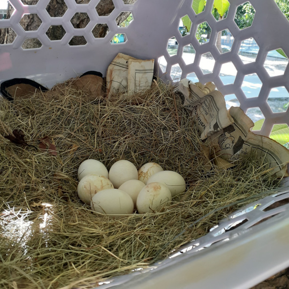 После чантинга, по темноте, когда куры уже не видят, монах аккуратно подхватил курицу, прижав крылья, и перенёс в корзинку на дереве. Та что-то там пошуршала и затихла. На утро, направляясь на пинта бат, монахи опять увидели свежее яичко на стеклоочистителях минивэна и курицу гуляющую по саду.