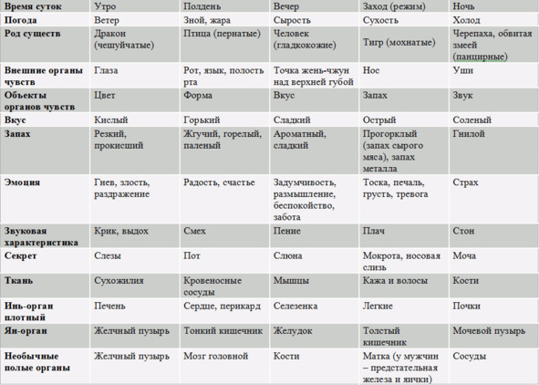 Система у-син тесно увязывает понятия трёх регулирующих систем со взаимодействиями элементов. Причём во всех областях, не только в физиологии, но и в психологии, и в ментальности, что естественно для буддистского понимания устройства мира. Я намерено сократил таблицу взаимодействий, чтоб не отвлекать внимание на посторонние аспекты. Такие таблицы можно выстраивать до бесконечности, высматривая соответствия пяти стихий любым сторонам жизни. В нашем случае интересны взаимосвязи в организме человека. Можно привести несколько примеров из обычной жизни и врачебной практики, которые с поразительной точностью объясняют, казалось бы, необъяснимые вещи. Как то жалобы некоторых на недействие кофе перед сном. Дело в том, что кофе, если он не обладает соответствующей концентрацией кофеина, то может рассматриваться как просто жидкость. А «вода» связана с почками, мочевым пузырём и подавляет «огонь» к которому относится сердце. Значит никакого стимулирующего эффекта не будет, а будет успокаивающий.