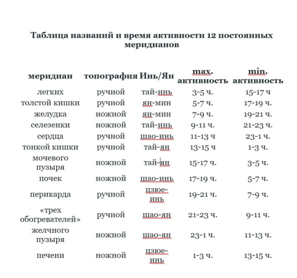 Считается, что у здорового человека ци беспрепятственно циркулирует по 12 основным меридианам, причем в течение суток она находится в них в строго определенное время.