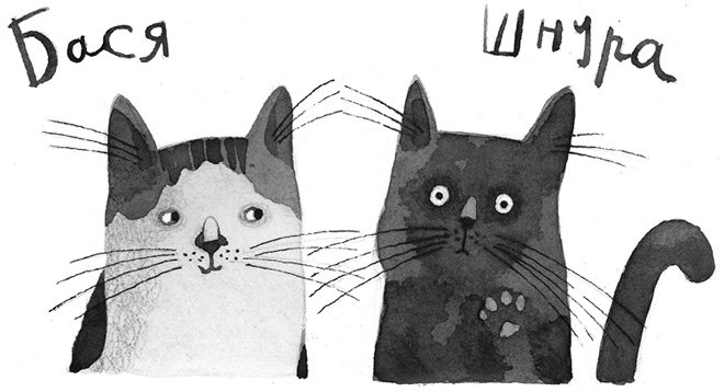 – Две… Кошка Бася – толстенькая и беленькая. Кошка Шнурок – чёрненькая и вечно спящая.