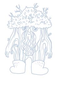 Спустя пару часов увидели речку и перекинутый через неё резной деревянный мост. Рядом стоял человечек-пенёк. Он весь будто оброс корой, руки его были точно толстые ветки, на голове лежала шляпа из мха. И только длинная седая борода и валенки делали его похожим на человека. Оглядел он путников и проскрипел: