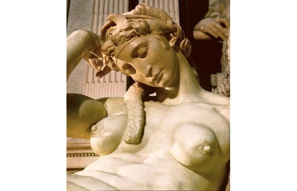 При этом он, действительно, говорит о кошках, но дело в том, что кошками в те времена называли крестьян Ломбардии и окрестностей! Примерно так же, как русского крестьянина можно было бы фигурально назвать медведем. Во времена Микеланджело большая часть населения Ломбардии страдала от зоба – увеличения щитовидной железы. Много веков спустя ученые выяснили, что причиной этого был недостаток йода в местных источниках питьевой воды. Откуда Микеланджело знал, что причина заболевания связана именно с водой – трудно сказать. Известно, что он не только блестяще разбирался в анатомии и физиологии человека, но и оставлял скрытые символы, используя свои знания. Для примера посмотрим на надгробие герцога Джулиано Медичи, которое Микеланджело украсил статуей «Ночь».