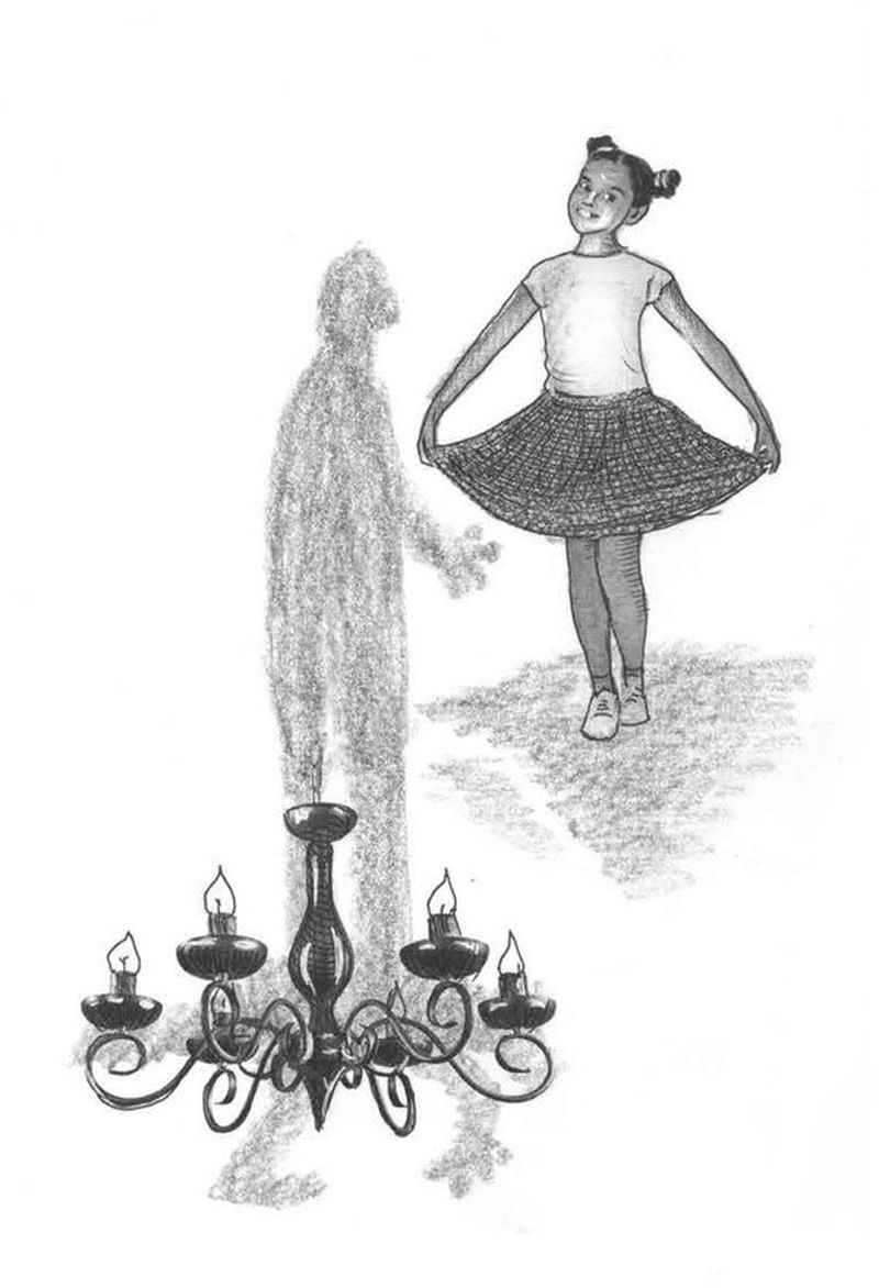 Все это время призрак дремал на люстре и смотрел сны. Сны были тревожные и все на одну и туже больную для него тему: у него до сих пор нет своего имени. Пока Аленка завтракала, призраку стало сниться, что он попал на веселый и красочный праздник, где было полно таких же как он призраков. Ему приглянулась одна озорная девочка одного с ним возраста, он захотел с ней подружиться и обменяться адресами. Не долго думая, призрак подлетел к девочке и сказал: