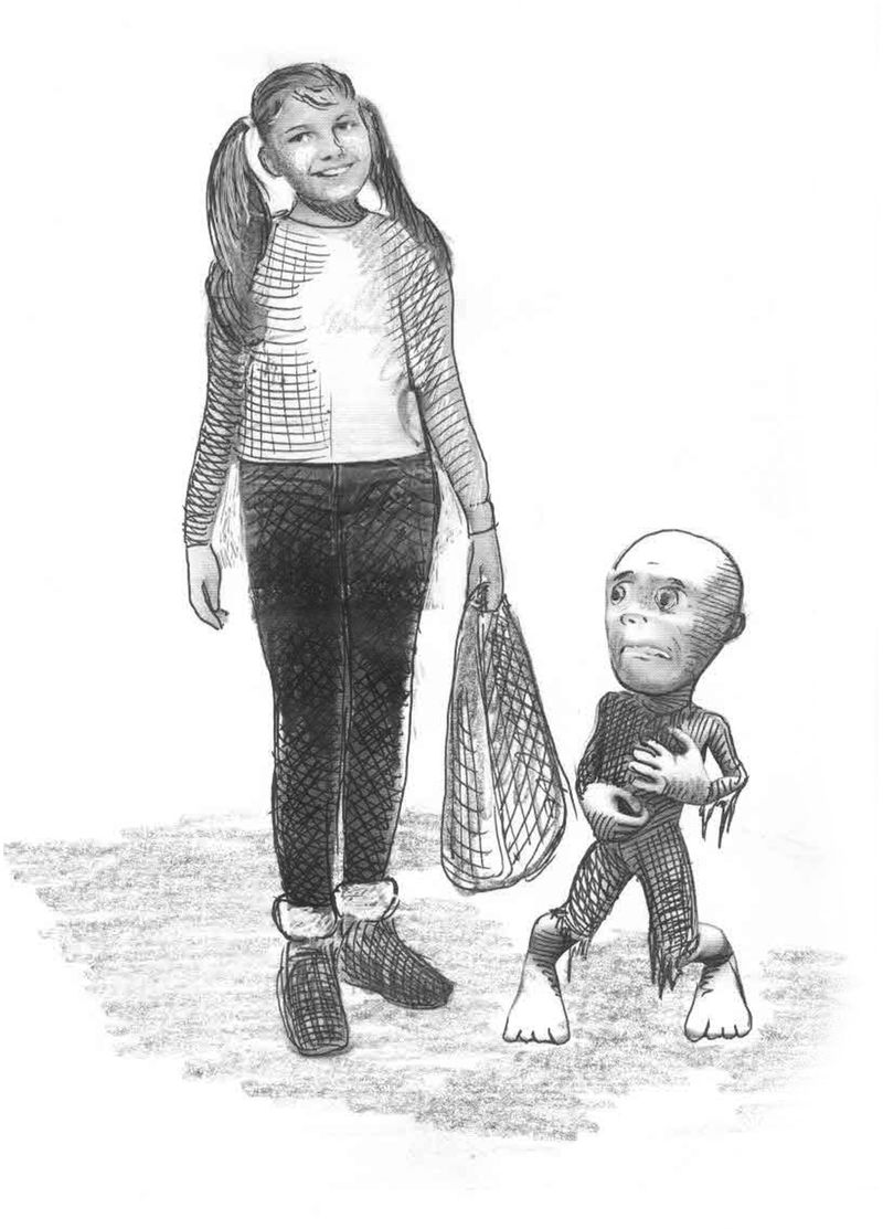 – Какого спут… – Аленка обернулась и не успела договорить, потому что увидела за своей спиной маленького человечка, который испуганно к ней жался. – Зомбик! – воскликнула она невольно, потому что вспомнила, что именно в такой одежде была кукла зомби, которую она не подумав, оживила в «Замке ужасов».