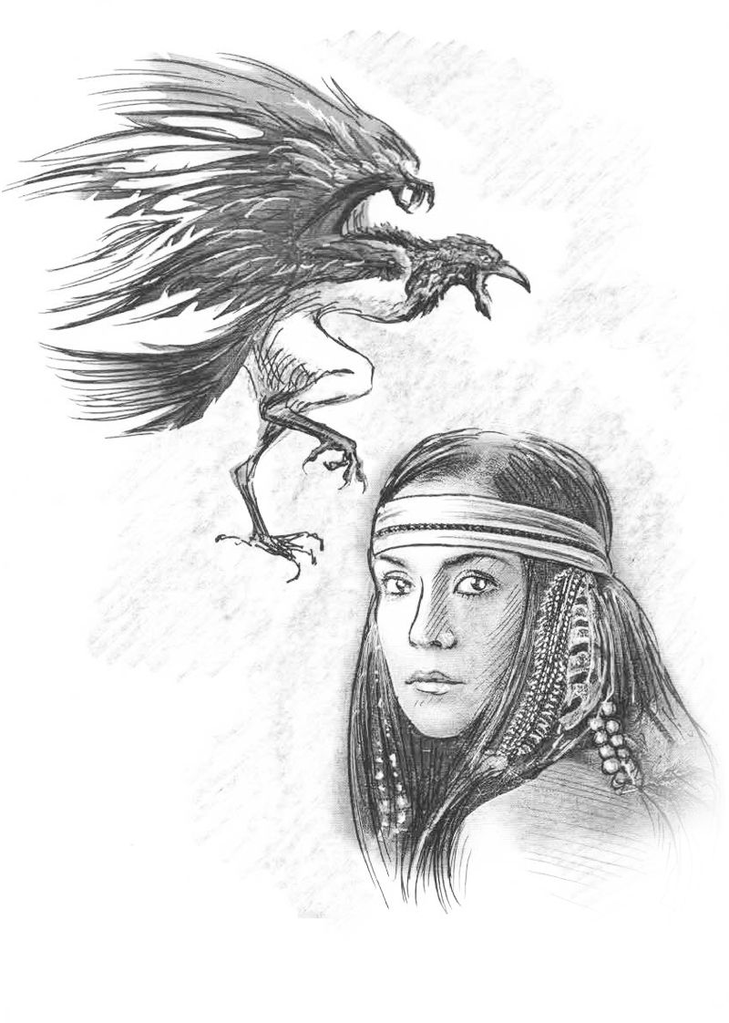 К несчастью, слава о ее красоте проникла в подземный мир, и Владыка Подземного царства Мара-Ти-Ку превратился в черного кондора и самолично отправился посмотреть на невиданную красавицу.