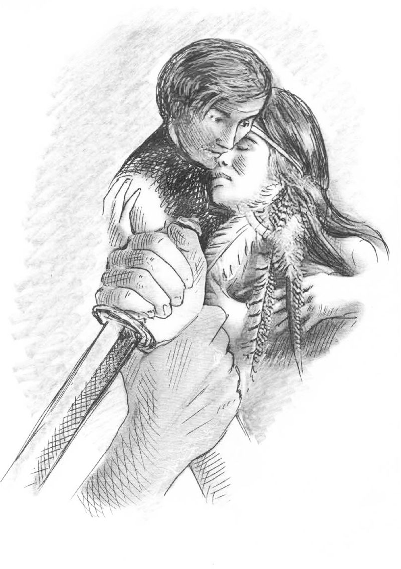 Когда он подлетел к поселению, где жила девушка, воины племени как раз вернулись из удачного набега на большое ранчо бледнолицых, где разводила скот и обрабатывала землю большая многодетная семья. Вырезав, как положено в таких случаях, почти всех, включая маленьких детей, стариков и женщин, воины с богатой добычей и несколькими наиболее выносливыми пленниками вернулись домой, где их встретили как героев. Чтобы отпраздновать успех было затеяно празднество в честь Бога Солнца – покровителя команчей. Это был древний обычай, который нельзя было нарушить. Во время танца дочь вождя, юная Озуркель, должна была исполнить красивую и торжественную церемонию – принести человеческую жертву самому Богу Солнца. В тот раз для этого выбрали молодого и сильного пленника по имени Джозеф Ли. Во время своего танца Озуркель должна была его поцеловать, а затем сразу же заколоть ножом в сердце. Поцелуй дочери вождя означал, что племя с благодарностью принимает милость Бога Солнца, а принесение человеческой жертвы – символизировало готовность отдать Богу самое ценное, что есть у человека – жизнь. Но случилось так, что юная Озуркель без ума влюбилась в свою жертву при первом же взгляде. Она не хотела убивать прекрасного юношу, но и не могла нарушить вековой обычай, дабы не навлечь гнев небес на свое племя. Во время танца девушка страстно поцеловала пленника и распорола ножом веревки, которыми тот был привязан к столбу; а затем попыталась воткнуть нож в свое сердце, чтобы самой стать жертвой и тем самым спасти любимого. Однако тот человек, и сам плененный красотой девушки, разгадал этот умысел; он успел перехватить ее руку и отобрать нож.