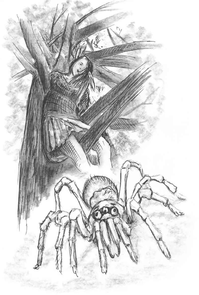Хотя Аленка была сильно шокирована жестокостью нравов героев всей этой истории, вслух она не стала ничего говорить, чтобы не задеть чувств своей новой подруги. Ведь она видела, как сияло ее лицо во время рассказа. Аленка уже хотела соврать, что сказка ей понравилась, но не успела, потому что неожиданно прямо перед ними на тропинку вылез большой мохнатый паук с огромными глазищами.