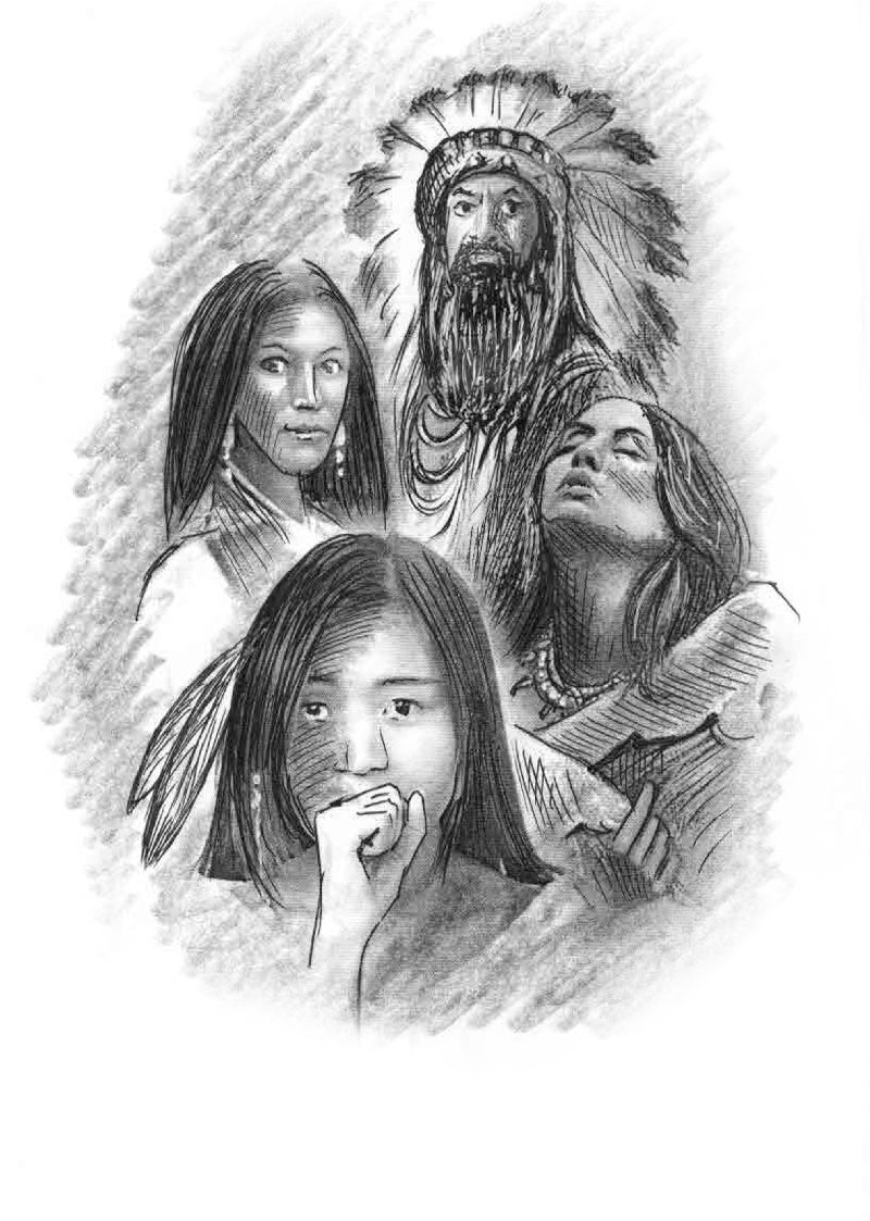 Тем временем картина сменилась. Перед глазами детей возникло помещение большого вигвама. Внутри находилось трое: могучего телосложения мужчина с густой рыжей бородой, измученная горем женщина и совсем юная необыкновенно прекрасная девушка с длинными иссиня-черными волосами и большими печальными глазами.