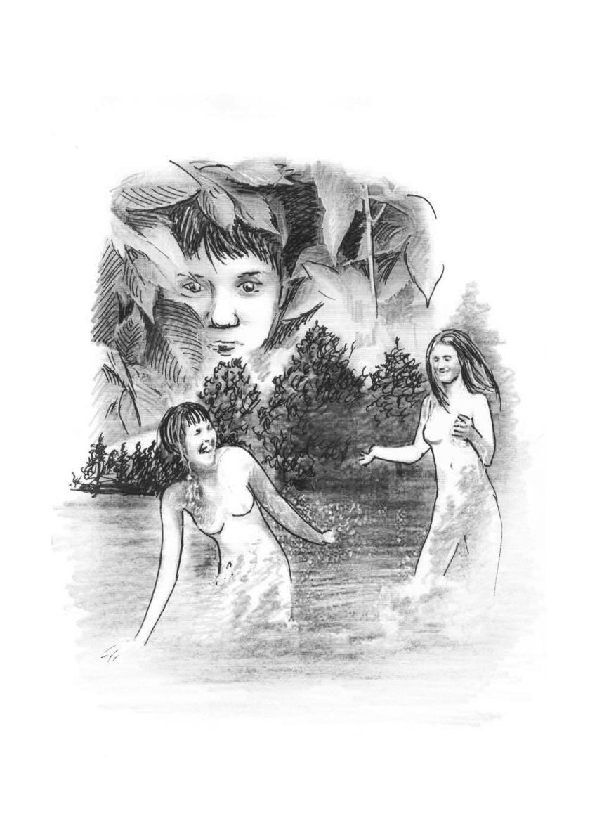 Олеся согласилась; они быстро скинули с себя платья и трусики, нагишом с визгами бросились в воду и начали там весело бултыхаться. Потом выбрались на берег и стали обсыхать на жарком солнышке.