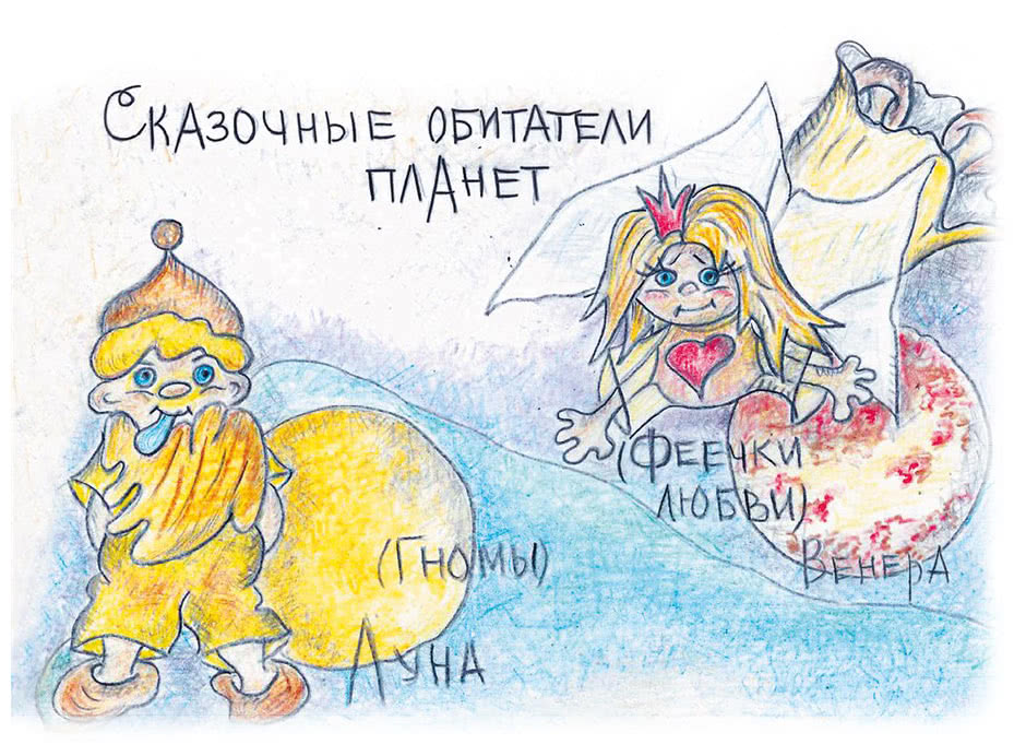 На бело-жёлтой с красными крапинами планете Венера, носящей имя римской Богини любви, живут добрые феечки, несущие в мир любовь. Они лакомятся нектаром со своих ромашковых полей. На груди у фей любви светятся яркие красные сердечки, а за спиной – прозрачные крылышки.