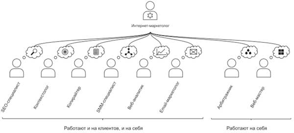 Иногда бывает так, что интернет-маркетолог выбирает себе узкое направление и развивается как профильный специалист. Так же как и врачи – от общей практики переходят к специализациям: невролог, кардиолог, ревматолог и т. д.