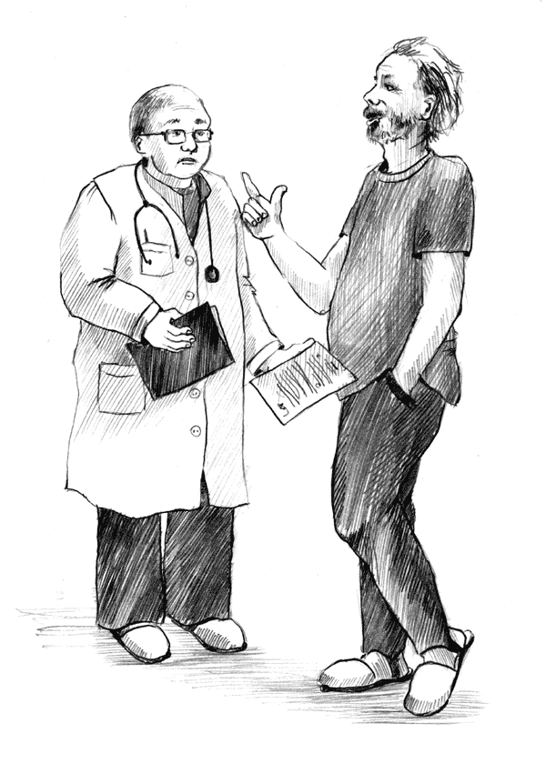 Доктор окинул взглядом лежавших на кроватях больных, открыл историю болезни, полистал и, пристально глядя на пациента, ответил: