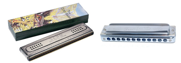 Губные Гармошки Тремоло – это такие же, как и блюзовые, диатонические гармоники, но они имеют в четыре раза больше отверстий, которые располагаются в двух горизонтальных рядах. При игре каждой ноты звучат одновременно два язычка, которые находятся в верхнем и нижнем отверстиях одного вертикального ряда (канала).