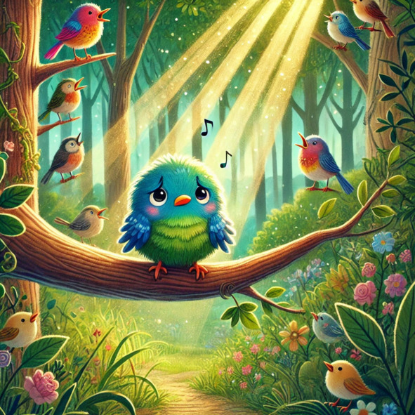 Nyota watched, her heart stirring. Their songs were clumsy but filled with hope. She opened her beak and joined them, her voice blending with theirs.