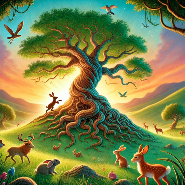 The storm raged, but the willow held firm, her roots gripping the earth. The animals huddled together, safe under her canopy.