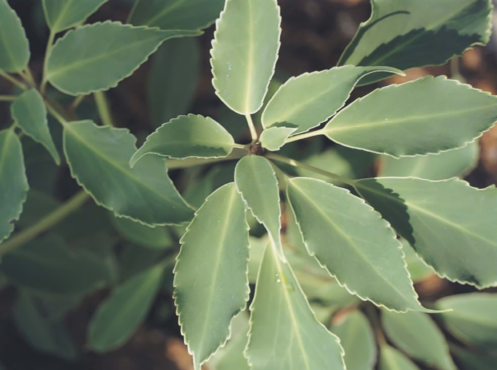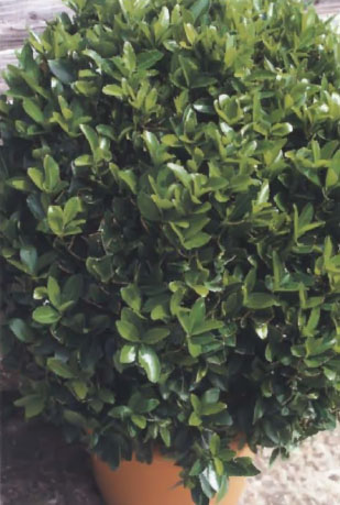Euonymus japonicus ‘Compactus’ is an unusual leafy choice for a pot.