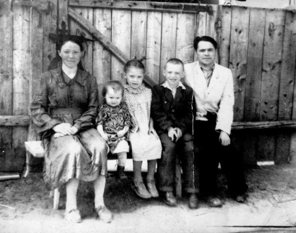Слева направо: мама, сестрёнка Флюза, сестрёнка Люба, я, папа.