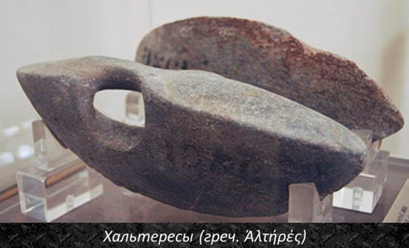 Первые спортивные снаряды, напоминающие сегодняшние, появились впервые тоже у Греков и назывались они – Хальтересы. Интересно, что использовали их не только для развития силы и мускулатуры, но и для разбега в прыжках в длину.