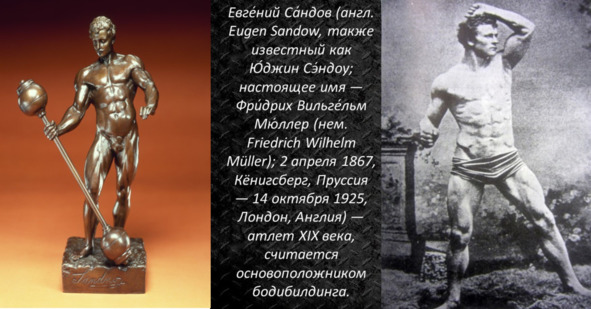 За свои достижения в развитии силы и мускулатуры, о которых он написал в шести книгах, таких как: «система физического развития» и «бодибилдинг: человек в действии» его признали основателем бодибилдинга. Чуть менее чем через сто лет, образ Евгения Сандова был выбран для статуэтки – главного приза самого значимого турнира по бодибилдингу «Мистер Олимпия» который ежегодно проходит в Лас-Вегасе.