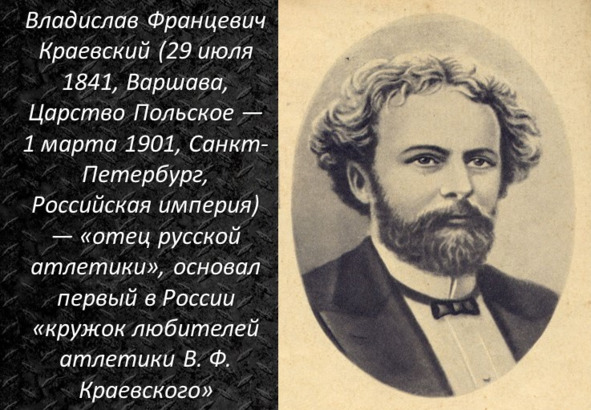 Первые упоминая о атлетизме в России начали фигурировать еще в царствование Елизаветы (конец XVI века). Физические упражнения с отягощениями рекомендовались тогда вместо «пустых забав». Однако атлетизм как спорт высших достижениях появился во времена Владислава Францевича Краевского.