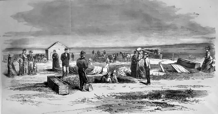 Через несколько недель после приезда они застолбили за собой участок в 160 акров, где построили грубое жилище – однокомнатную бревенчатую коробку размером 16 на 20 футов с люком в полу, который открывался в каменный подвал глубиной 7 футов. Когда дом был достроен, они перевезли туда двух оставшихся членов семьи, мать и дочь, которые прибыли на поезде ближе к Рождеству.