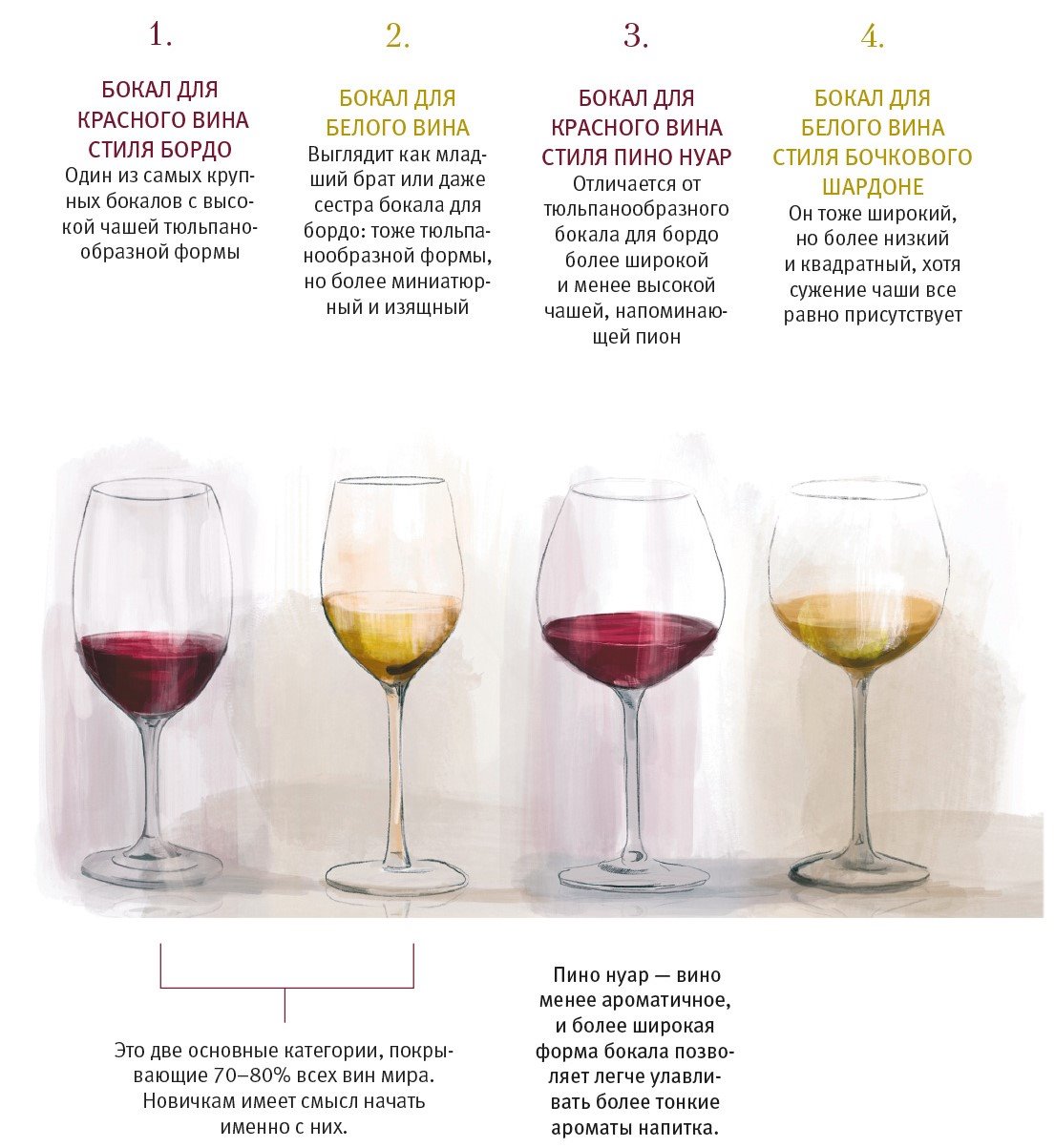 Если у вас есть желание стать обладателем двух видов, возьмите бокалы для белого вина (они подходят и для игристого), а также для красного вина бордоского стиля.
