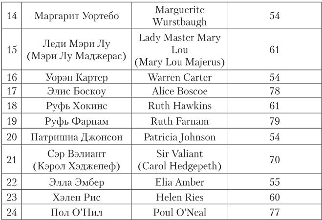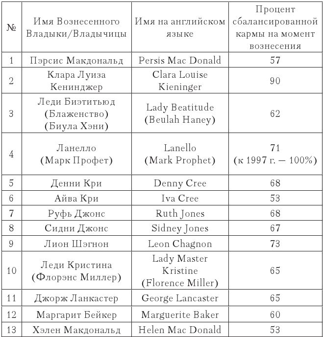 Вознесенные Владыки, совершившие вознесение, служившие в Общине Саммит Лайтхауза.Таблица 7