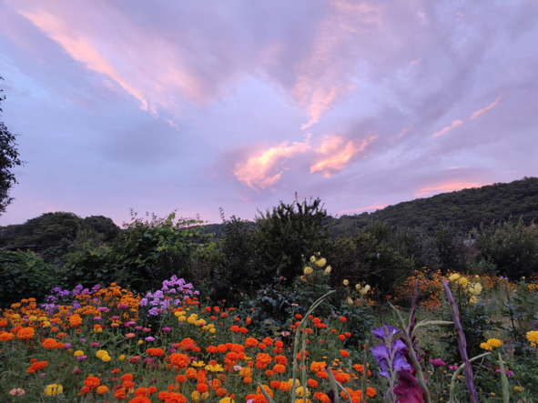 И, конечно! На фоне бабушкиных клумбочек закат смотрелся еще красивее. Ярче!