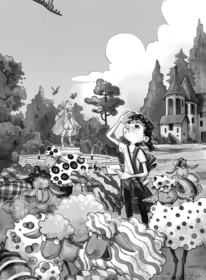 Когда из-за деревьев наконец показалось небольшое стадо, Альва громко расхохоталась. Овечки были разных цветов, и к тому же кто в полоску, кто в горошек, кто в клеточку. А одна овечка, светло-розовая, выделялась ярким пятном даже на фоне стада. Выглядело всё это ужасно забавно. Кому, интересно, пришла в голову безумная идея раскрасить овец? Или это тоже вышло случайно? Овечья палитра пробрела мимо Альвы с возмущённым блеянием.