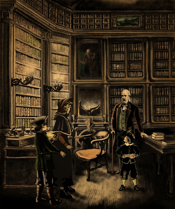 Сколько же здесь было книг! Я никогда не видела их столько разом, да и вообще не представляла, как можно собрать столько книг в одной комнате… Я подняла голову: куполообразный потолок терялся в вышине… Мы сделали несколько шагов вслед за нашим удивительным провожатым. Прямо у камина лежал пушистый тёмно-зелёный ковер, и стоял тяжёлый дубовый стол, где были разложены книги и различные игрушки, которые я пока не успела рассмотреть. Ещё там было точь-в-точь такое же кресло, какое мы видели в витрине; только сейчас оно пустовало. Я покосилась на диван, что находился неподалёку: на нём были рассажены в ряд несколько одинаковых кукол – те самые мальчики в одинаковых одеждах, что хозяйничали в витрине. Ростом они были почти что в половину меня. Ещё один такой мальчик стоял у стола с красивой, яркой коробкой в руке. Из любопытства я заглянула туда: там лежал изумительнейший набор красок: столько разных оттенков я и вообразить не могла; ещё там были всевозможные кисти, цветные карандаши…