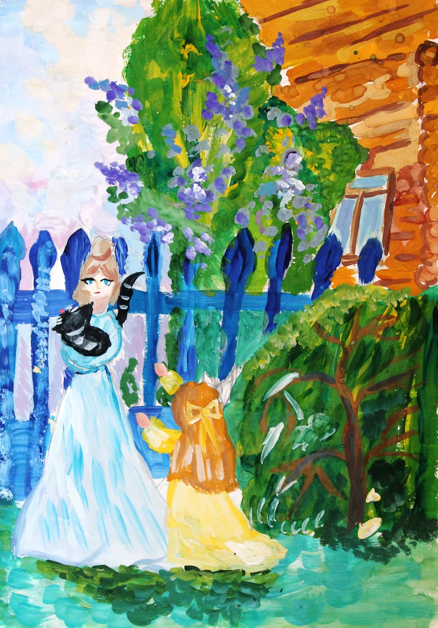 «Ах, какая благодать купаться в лучах солнца и наслаждаться запахом сочной июньской травой. Травушка-муравушка – мягкая, ласковая словно шёлк» – рассуждала молодая девушка. Рядом, играя с солнечными зайчиками, резвилась озорная собачка. Над её мордочкой пролетел лохматый толстый шмель. Собачка была еще щенком, поэтому шмель показался ей таким сердитым и страшным, что она испугалась и тихо заскулила. «Тришка, Тришка! Ко мне!»– улыбаясь, позвала Лиза. Тришка с разбегу плюхнулся в руки хозяйке и тут же успокоился. На солнце им вместе было так хорошо!