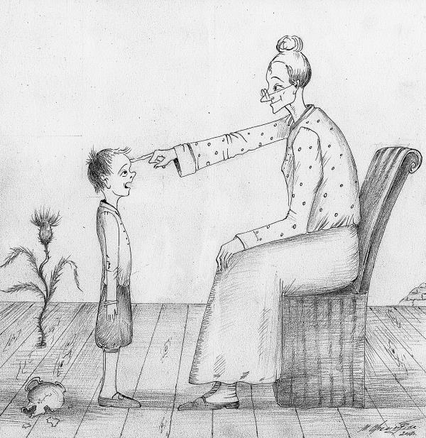 Приезжая к нам в Кёнигсберг погостить, бабушка обожала с утра до вечера возиться в саду – то с цветочными клумбами, то с огородными грядками, на которых она выращивала укроп, огурцы и помидоры. Ковыряясь в земле, выпалывая и выдёргивая сорные травы, уколола колючкой чертополоха средний палец на правой руке. Он поболел, поболел и вдруг стал утоньшаться и сохнуть, а через месяц на её руке торчал несгибающийся перст, состоящий из обтянутых кожей суставов.