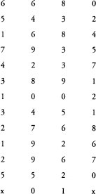 The editor, amazed, sent S. to the distinguished Russian psychologist A. R. Luria for testing. Luria did test him that day, and for many other days over a period of many decades. In all the testing, he could not find any real limit to his capacity to recall details. For example, not only could he perfectly recall tables like this one full of random data after looking at them for just a few minutes: