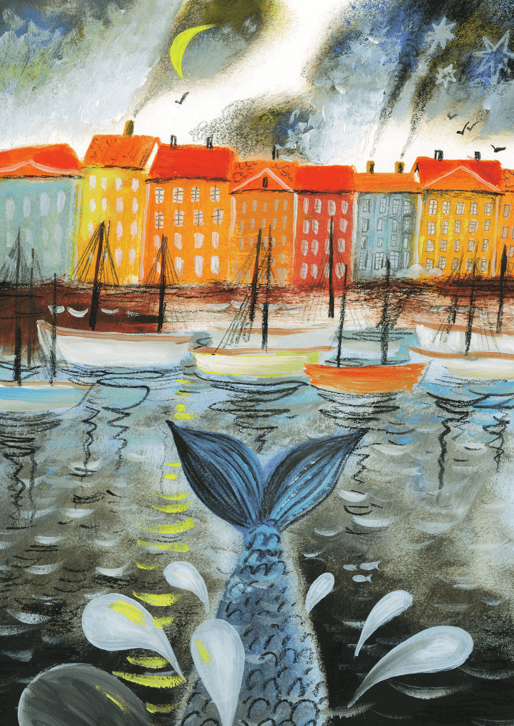 Ска́ген – маленький, продуваемый ветрами городок на мысе Грене́н. Это самая северная точка Дании. Люди здесь живут несуетливые. Уже несколько веков их основное занятие – ловить рыбу и бороться с песчаными бурями. Сами они называют свой город «краем света». И вдруг на этом краю света с низкими жёлтыми домиками под красными черепичными крышами случился небывалый переполох. Все его жители от ма́ла до велика́ высы́пали на улицу и куда-то побежали, позабыв и о работе, и о школьных уроках, и даже о завтраке в кофейне за круглыми столиками, откуда всегда так вкусно пахнет бутербродами и горячим шоколадом.