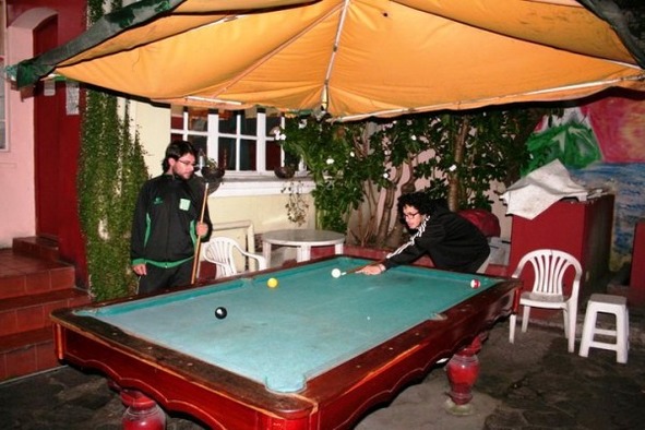 Тогда мы утеплились и познакомились с нашими соседями, собравшимися в открытом внутреннем дворе готовить и есть ужин, играть на бильярде и гитарах, барабанах, чаранге, повторять уроки испанского. Здесь собрались студенты от 16 до 60 лет из Канады, США, Австралии, Европы, Латинской Америки.