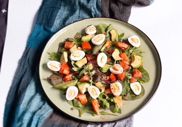 Салат, в котором сочетаются свежие овощи, зелень, насыщенные витаминами и важными микроэлементами перепелиные яйца и авокадо – отличная заправка высоко эффективным топливом в любое время дня для тех, кто любит вкусно, полезно и изысканно.