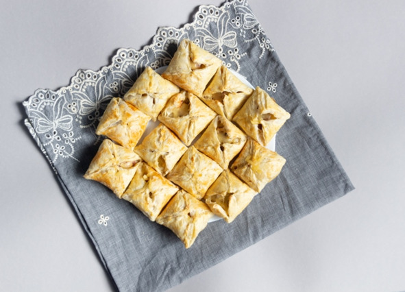 Это блюдо, пожалуй, стоит отнести к закускам. Слойки хороши и в горячем, и в холодном состоянии. Отличные сами по себе или в прикуску с первым-вторым-салатом. Очень вкусные, простые и быстрые в приготовлении, закусочные слойки выигрышно смотрятся на праздничном столе, ведь каждый день – праздник и подарок.