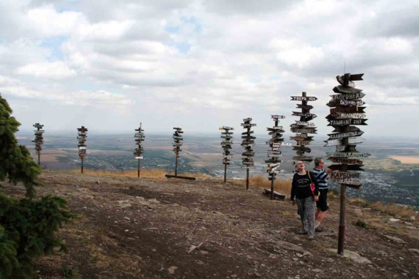 Поднялся сильный ветер, я решила спускаться по асфальтовой дороге, обвивающей гору, а то вдруг сдует. Уважительно смотрела на велосипедистов, заехавших наверх. После поворота догнала моих фотографов. Разговорились. Военные пенсионеры из Одинцова, отдыхают в санатории, в Пятигорске уже в 5 раз, очень им здесь нравилось. Показывали мне фотографии из окрестных достопримечательностей, куда они съездили на экскурсии. Больше всего восторгов у них было от Чегемского ущелья, водопадов, Голубого озера. Хвалили Кисловодск. И шубный рынок.