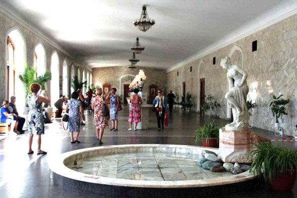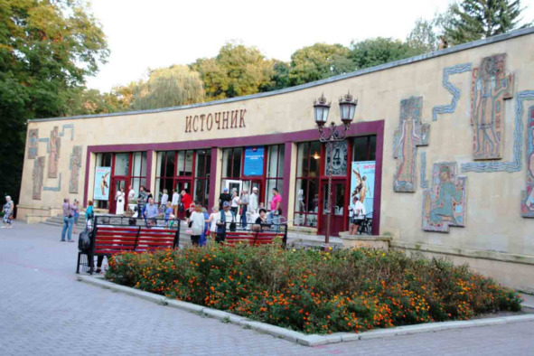 Сытая и довольная миновала студенческий городок из расположенных друг за другом ВУЗов и многочисленных студентов. Порадовали физкультурники с подвижными играми на улице. Пришла на трамвайную остановку и прокатилась до Бродвея. У входа в Цветник села на автобус до Провала – пещеры с озером. Миновав многочисленные санатории, мы приехали, но в понедельник висел замок. Спас ситуацию блестящий Остап Бендер, позволивший посидеть на стуле из гарнитура Мадам Грицацуевой. Обратно пошла пешком, благо под гору. Очень красивые старинные особняки-санатории, смотровая площадка, еще бювет «Источник №24». Подумала, что можно было бы устроить целый ЗОЖ квест с посещением всех источников и придумать новую версию приключений Великого Комбинатора.