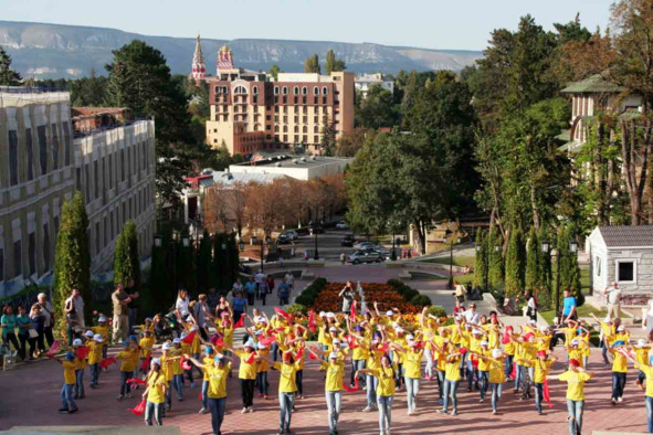 Спустившись, миновала пару санаториев, уточнила дорогу у доброжелательного аккордеониста. На каскадной лестнице танцевали школьники в желтых футболках под песенку о Кисловодске.