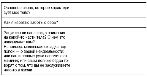 «Мое дорогое, любимое тело! Прости меня за мусор, который я в тебя складываю, не берегу тебя, уделяю мало внимания. Я поняла, почувствовала, что очень тебя люблю и буду о тебе больше заботиться, прислушиваться к твоим знакам. Уже сейчас я лучше чувствую тебя. Если что-то не нравится, возникает тошнота, чувство распирания, говорю себе: все, больше не надо есть, хватить пухнуть. Я очень тебя люблю, ты всегда со мной. Не подводишь, не бросаешь, а помогаешь. Получается, что я бросила тебя и отреклась от тебя. Прости меня. Я еще не совсем поняла, что ты говоришь мне лишним весом, но думаю, уже очень близка к этому. Ты всегда старалось быть сильным, большим, чтобы оберегать, защищать меня, – спасибо! Когда мне было страшно, ты всегда было со мной и спасало! Сейчас я в безопасности, мы в безопасности, так что можно расслабиться и наслаждаться жизнью. Спасибо, я тебя очень люблю и ценю!»